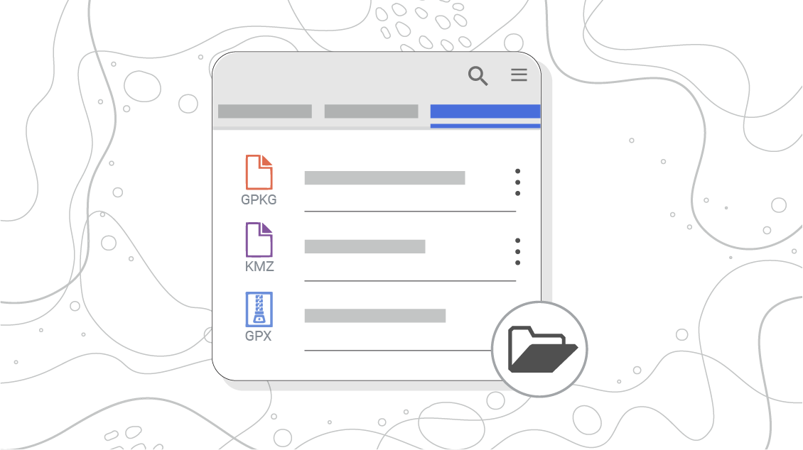 Add the necessary maps, projects or data stored in the memory of your device by pressing the button with the folder icon in “MY MAPS” and "MY DATA" tabs. The added files are automatically copied to the application folder.